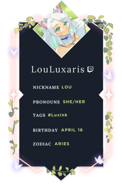 Ich bin eine sternengesegnete Mond-Hexe, die sich auf cozy und storylastige Inhalte konzentriert – immer mit einer Prise Sternenstaub und Magie. In meinen Streams erwarten euch Variety-Content wie Plauderrunden, Gesang, kreative Sessions und eine bunte Mischung aus Spielen – von gemütlichen Indie-Abenteuern bis hin zu kleinen, unheimlichen Ausflügen.